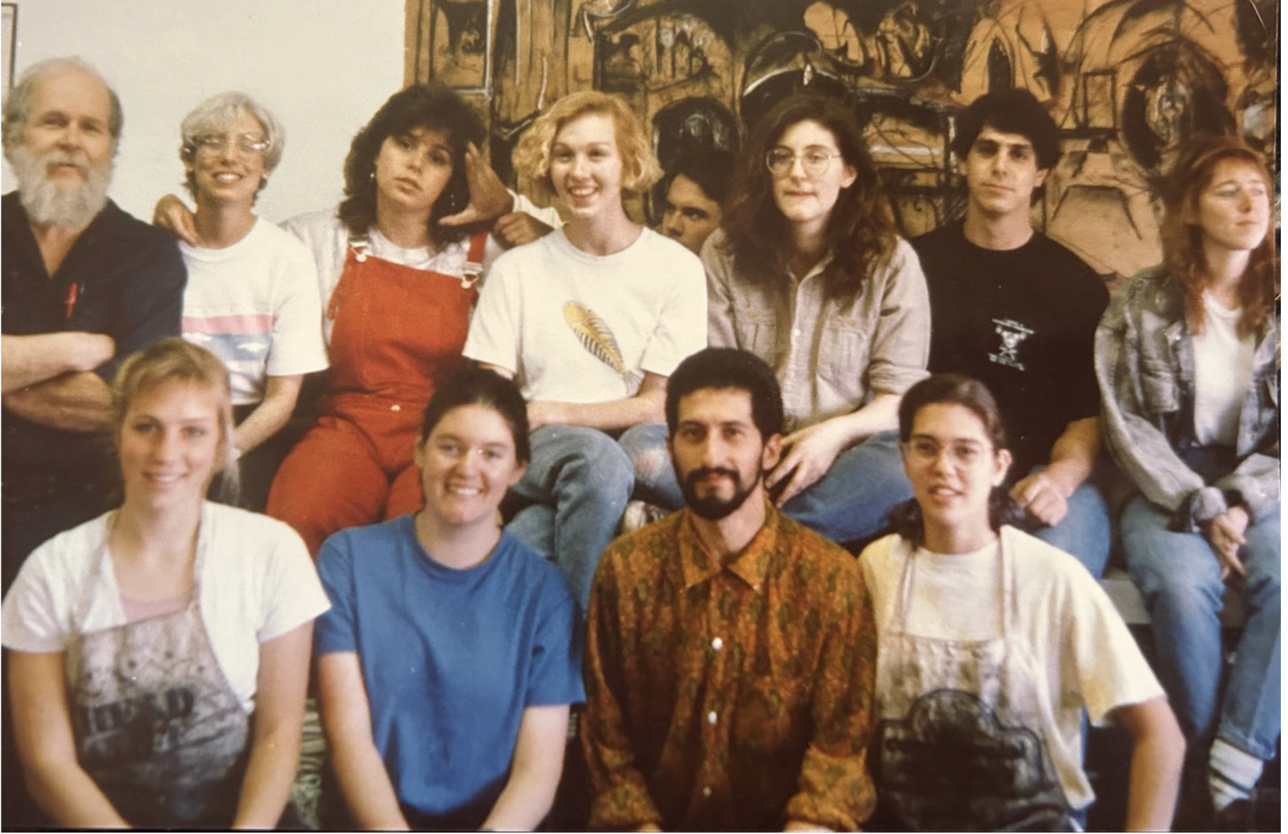 This is a photo of me with the printmaking department. That is my image behind us, and I am hiding in the middle.