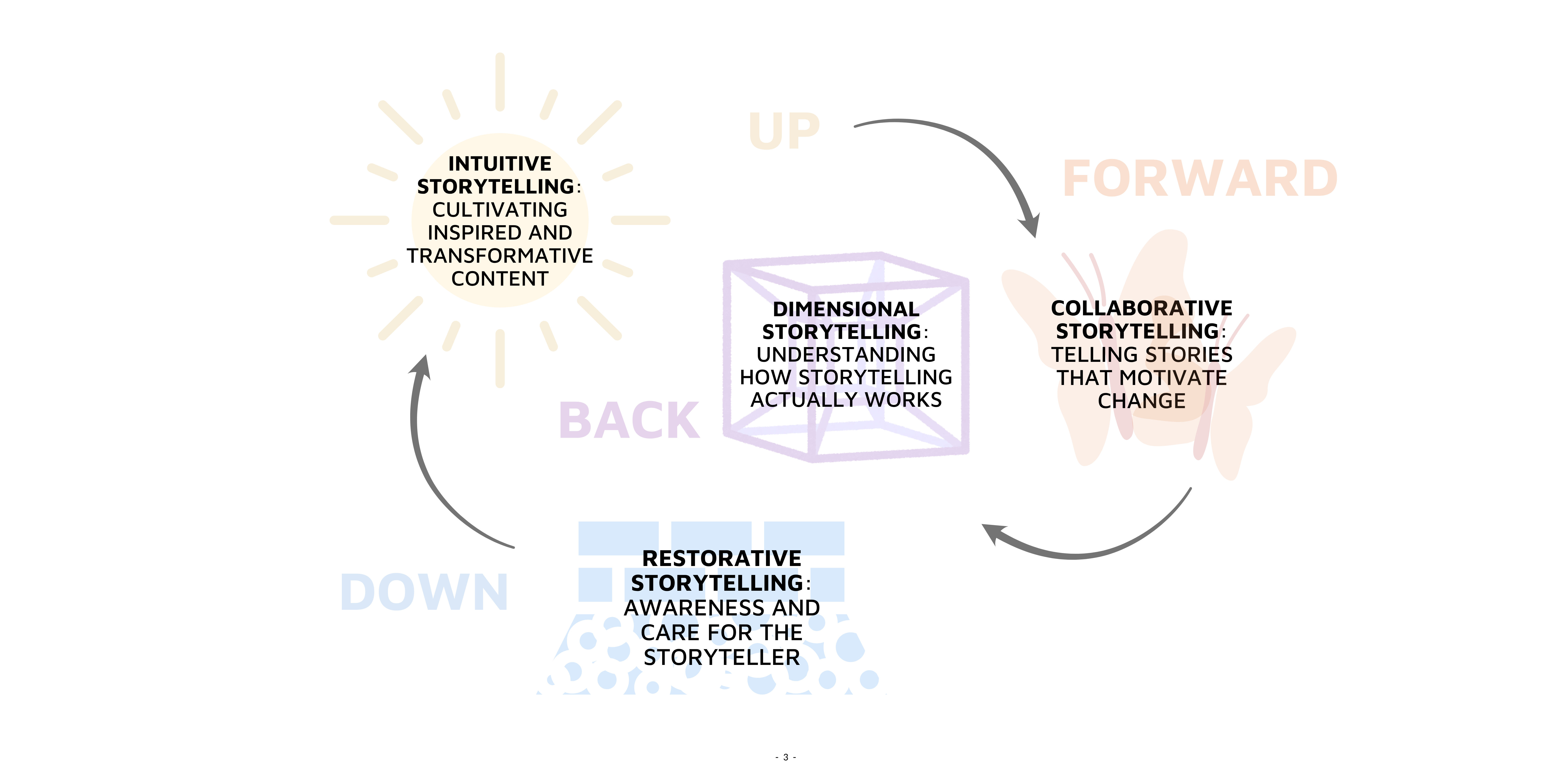 Dimensional Storytelling employs the gifts of the other three storytelling modalities, and directs them toward understanding the ways of the universe.